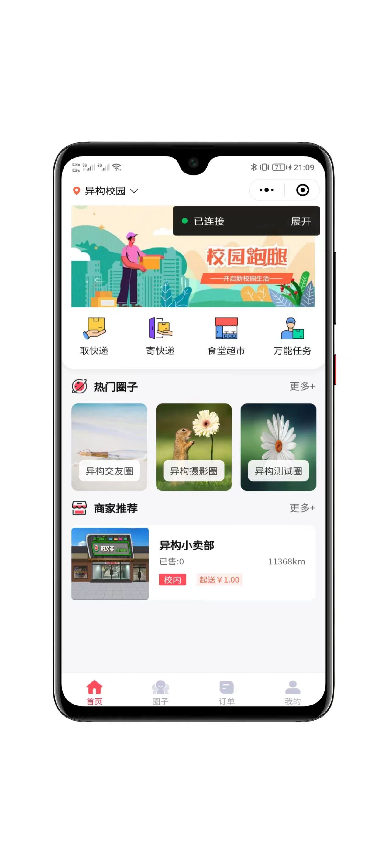 无限开通校园站点,独立管理,商家入驻、跑腿认证、社交圈子、接单大厅等,