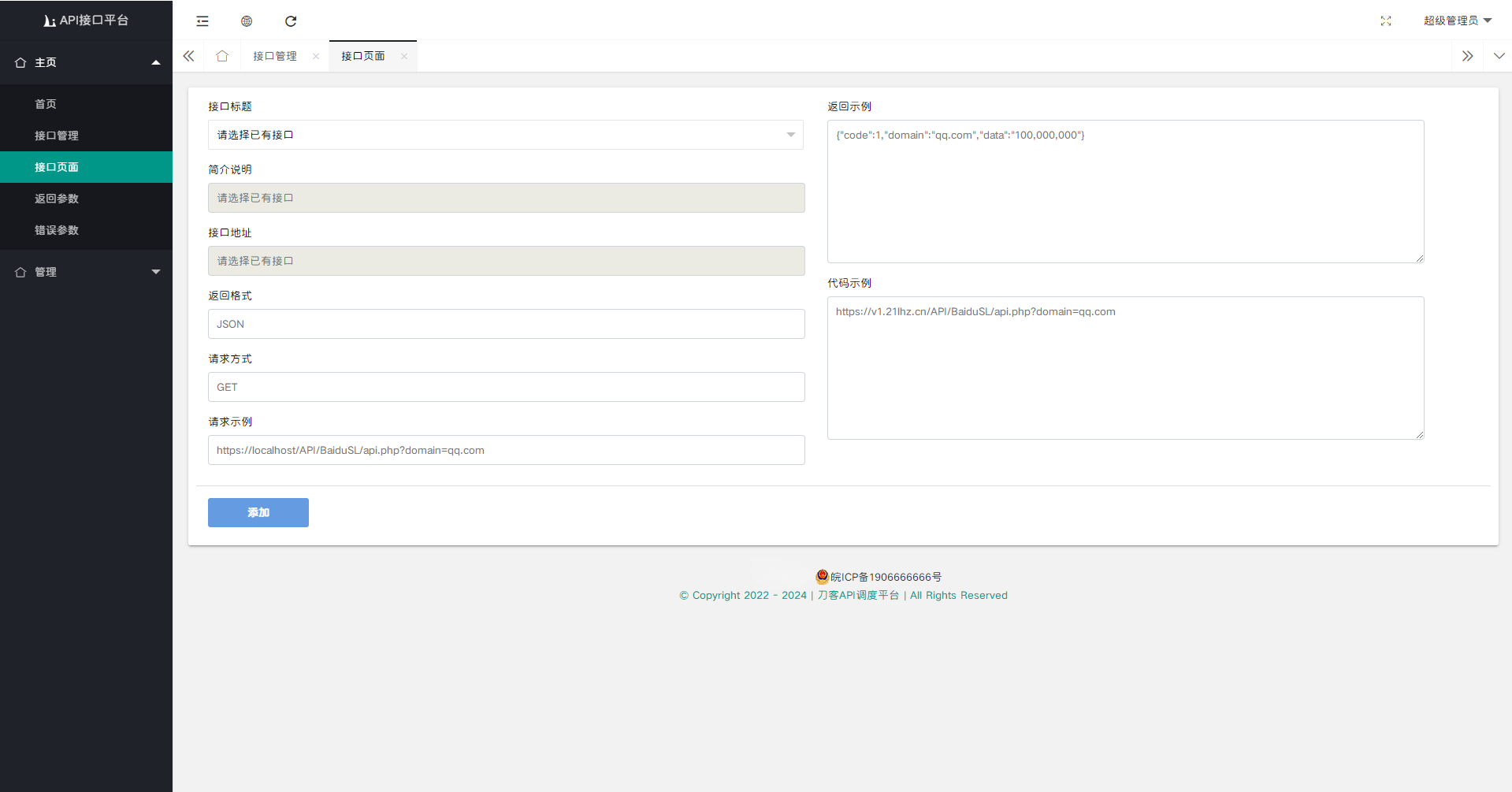 2024全新开发API接口调用管理系统网站源码 附教程!!!