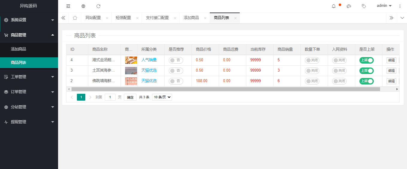 源码后台功能齐全,上传管理商品,可招分站长,添加分站,开启躺赚模式!