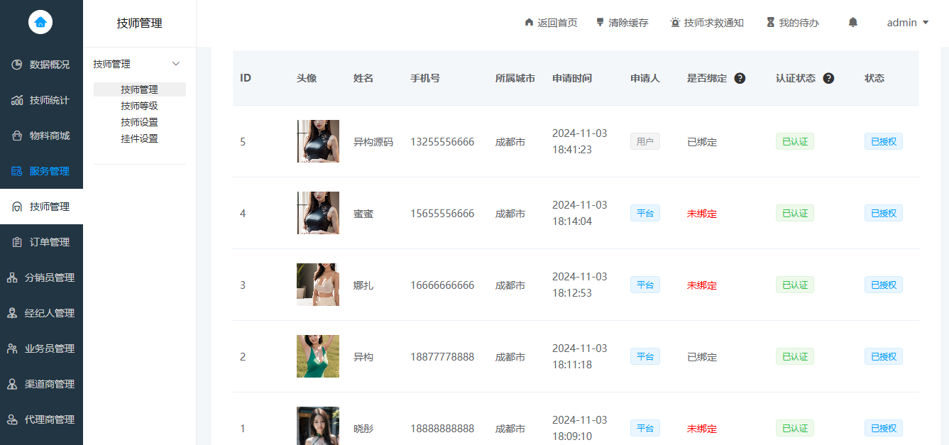 3、修复技师服务状态问题;