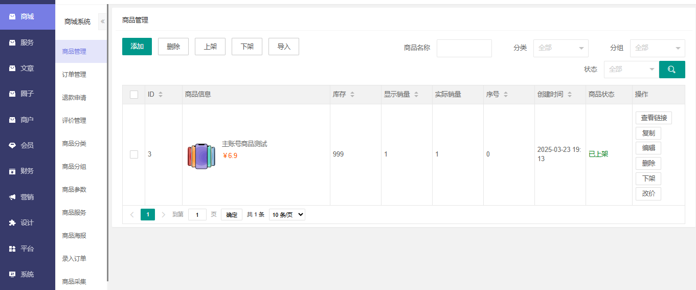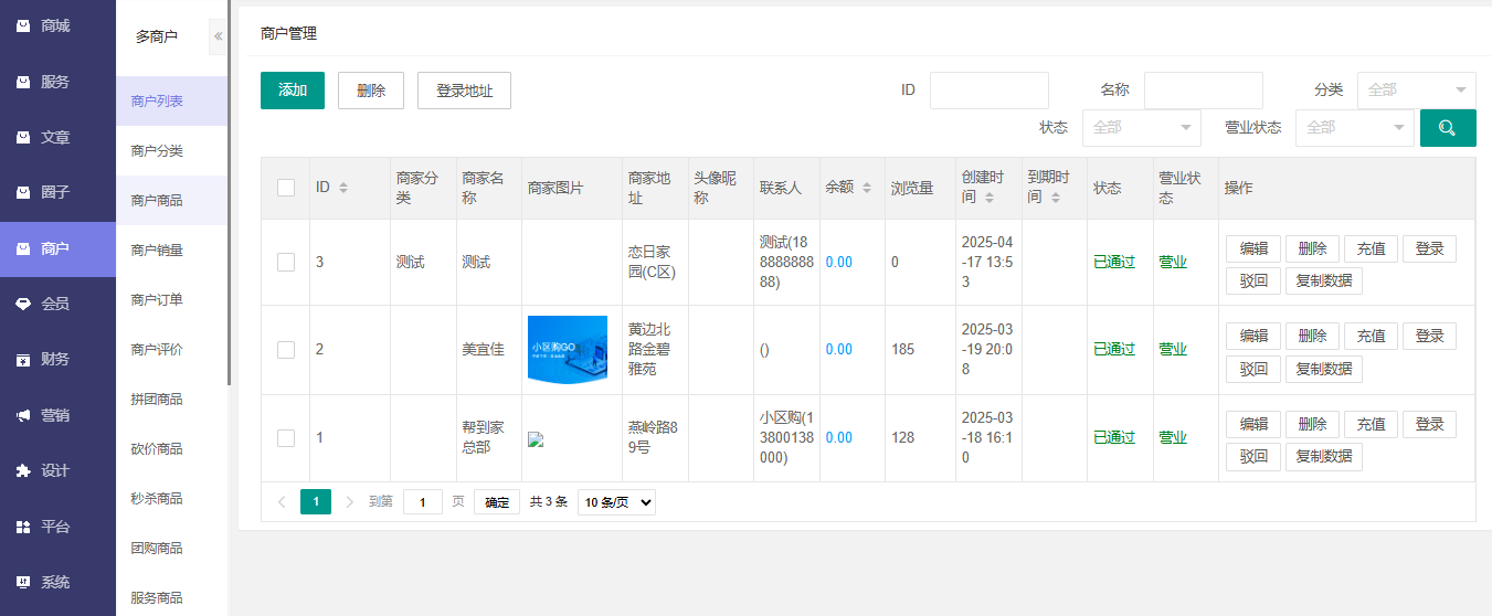系统支持多商户商城系统,独立的商户管理后台;