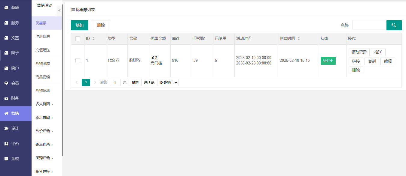 强大的营销活动:优惠卷、注册赠送、充值赠送、购物满减、商品促销、购物返现、多人拼团、幸运拼团、砍价活动、整点秒杀、团购活动、积分兑换、红包抽奖等;