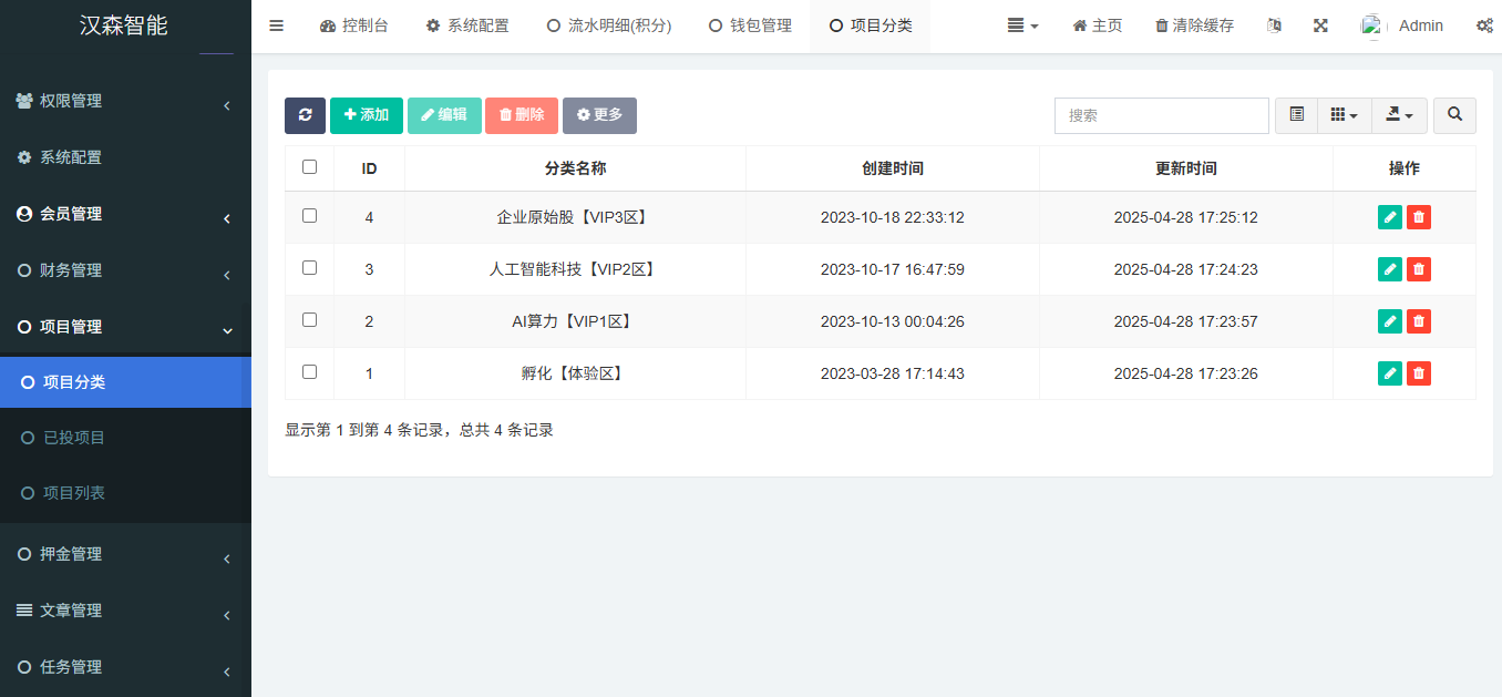 项目管理:项目列表,已投项目,项目分类!