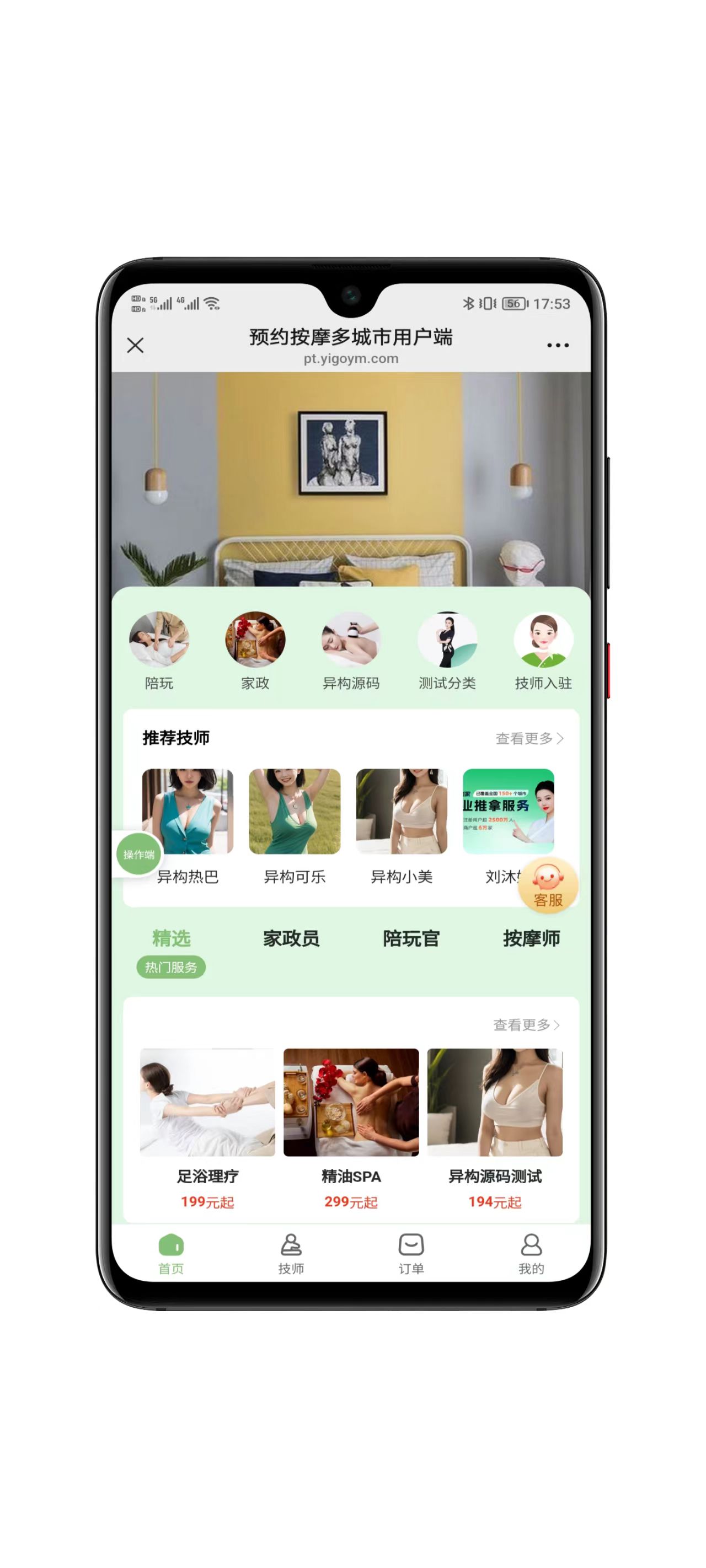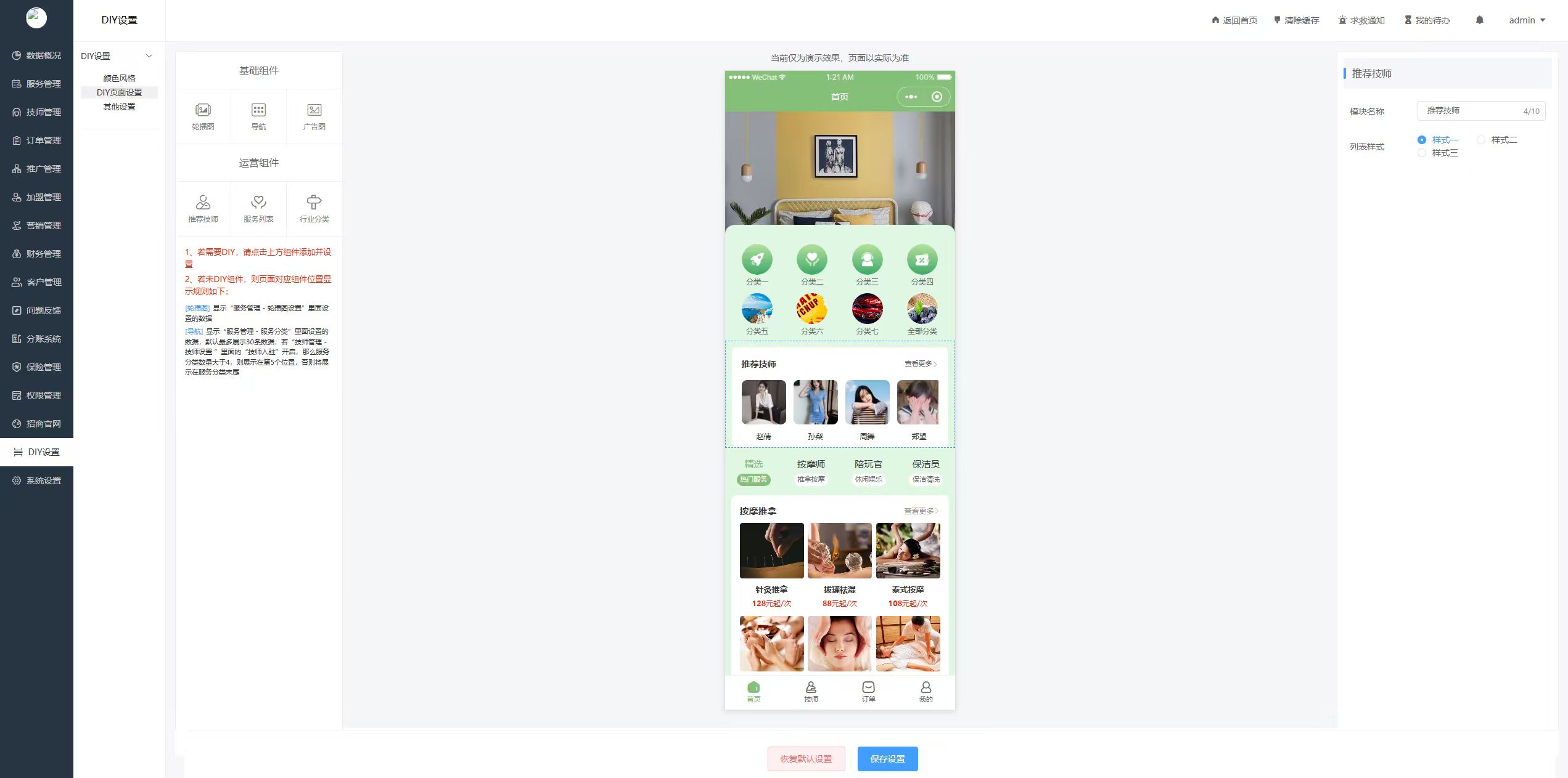 2、新增多行业功能,设置技师行业岗位,首页行业分类DIY;